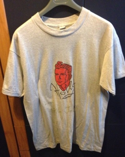 t-shirts, one white one grey both clearly signed