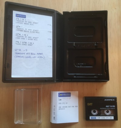"This Ampex 499 half inch tape contains 3 x mixes done by
