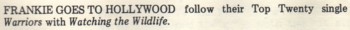SHOW LP WITH "FGTH" HOLLY JOHNSON SAYS